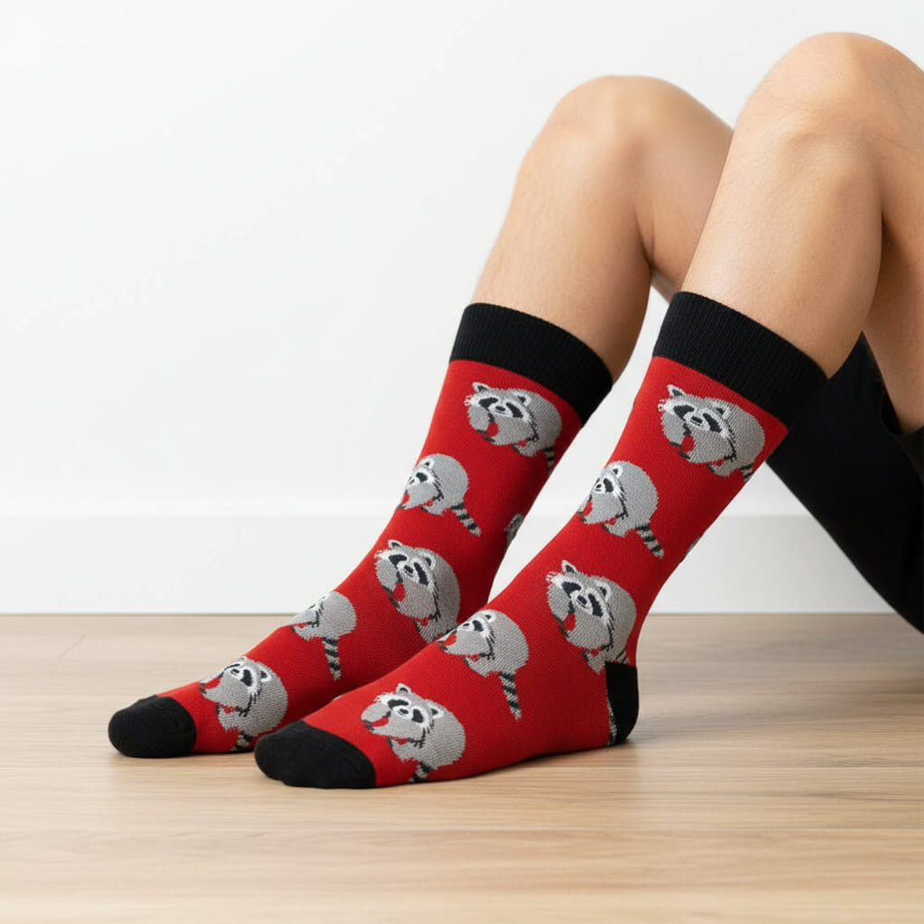 Κάλτσες ανδρικές βαμβακερές raccoon μέχρι τη μέση της γάμπας.