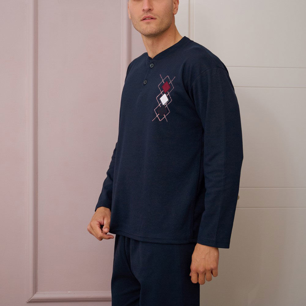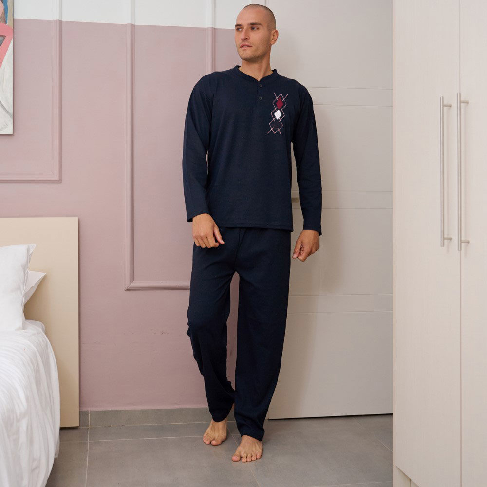 Ανδρική πυτζάμα βαμβακερή με φούτερ επένδυση.